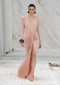 В вечерней моде этого сезона мягкие оттенки и тона пастельной палитры: бледно-голубой, нежно-розовый, персиковый, мятный. Наряд в пастельной гамме создает образ женственный и трепетный, а струящиеся ткани и элегантные фасоны подчеркивают его романтичность. Такое платье делает акцент на естественной красоте женского тела и прекрасно подходит для особых случаев.