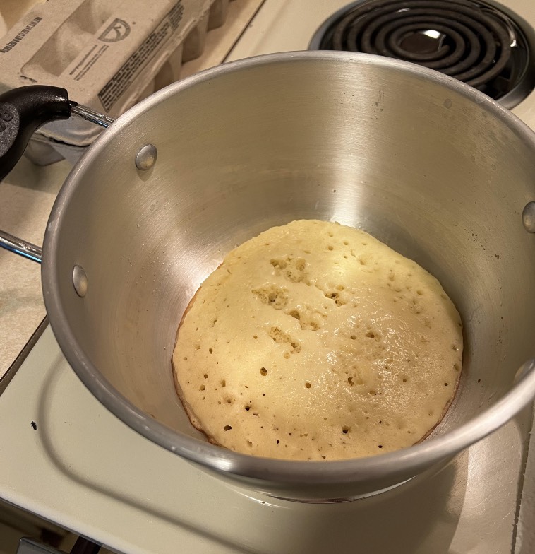 “Захотелось пожарить блинчики, но у меня не было сковородки. На помощь пришла кастрюля.”