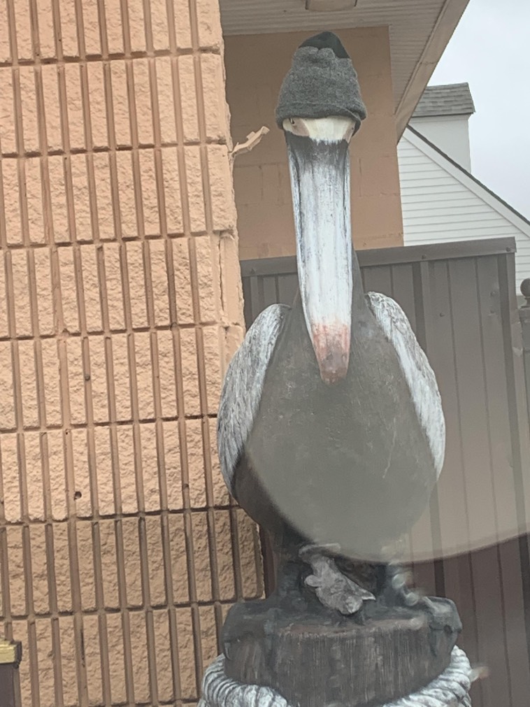 “Моя мама решила надеть шапочку на скульптуру, чтобы той было тепло, Шапочку уже пару дней никто не снимает.”