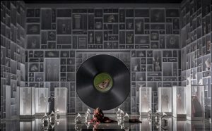 Границы сцены отмечены огромными стеллажами, на которых расставлены сотни случайных предметов, походящие на огромную коллекцию предметов искусства. В центре сценического пространства Пода создает для каждой из историй свой мир, в котором появляются и исчезают персонажи. Пода балансирует на грани классического и современного искусства, придумывая параллельные миры, наполненные глубоким смыслом, утонченной роскошью, блеском ар-деко и рафинированным символизмом. У каждой истории – свои визуальные символы, гигантские гротескные образы вроде огромной виниловой пластинки, гондолы, огромного колеса рулетки.