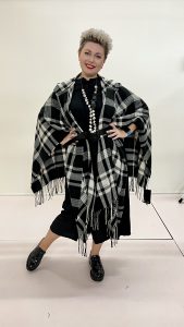 Еще один замечательный прием – многослойность, она может вытянуть силуэт, добавить ему стройнящие вертикальные линии, скрыть нежелательное. Например, если поверх черного платья надеть пончо в клетку, то получается очень интересное сочетание. Его можно накинуть сверху, или же заправлять под пояс, каждый раз оно будет выглядеть иначе. Многослойность в одежде эффективно и при этом эффектно скрывает объемы и всегда выглядит стильно и нестандартно, как любой хорошо продуманный образ.