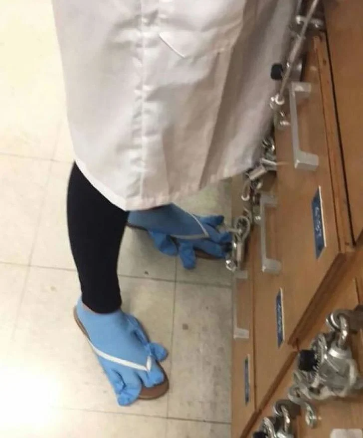 Это все же лучше, когда есть только бахилы и их приходится надевать на руки