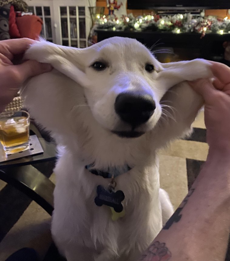 7. “У нашего пса Маршалла большущие щеки. Трудно удержаться, чтобы немного не потискать их.”