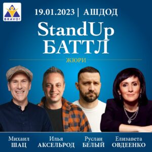 Ну что, друзья, теперь вы понимаете, что это будет за вечер?! Грустить уж точно не придется! И если вы тот, кто не любит и не желает скучать, если вы тот, кто любит «годный» материал, если вы тот, кто получает кайф от остроумных шуток, заказывайте билеты на Стендап Баттл. Напомним, он состоится в четверг, 19 января 2023 года, в 20:00, в городе Ашдод (Матнас Дюна-Юд Ашдод).