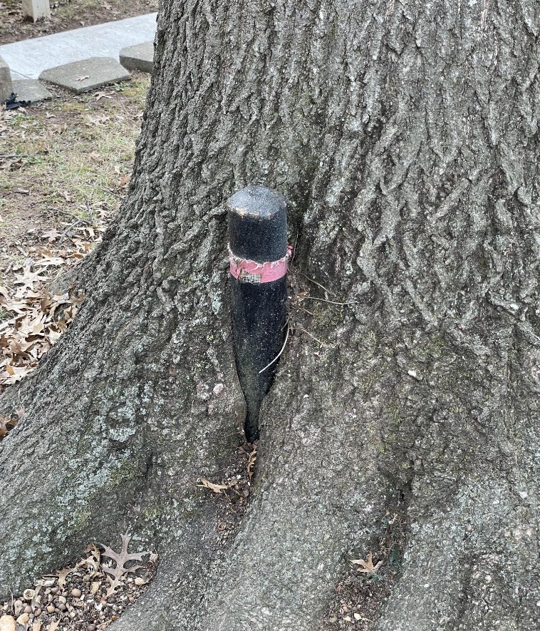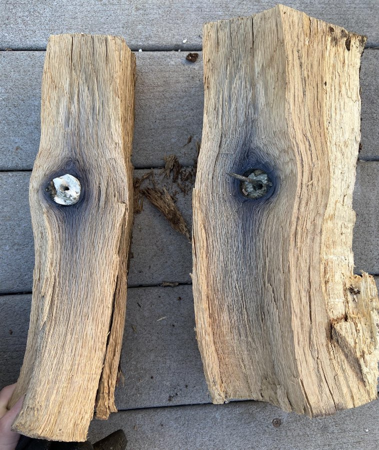 1. “Когда рубил дрова, услышал звук разбитого стекла. Оказалось, причина заключается в том, что это дерево когда-то «сожрало» керамический изолятор.”