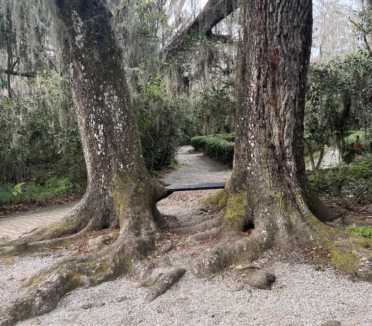 11. Выглядит так, словно деревья соревнуются, кто же из них сможет откусить больший кусок от скамейки