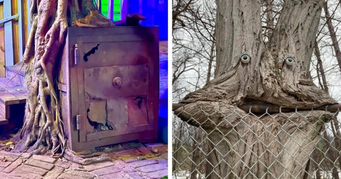 15. “Мой папа специально устанавливает разные предметы возле дерева, и потом наблюдает за тем, как оно постепенно их поглощает”