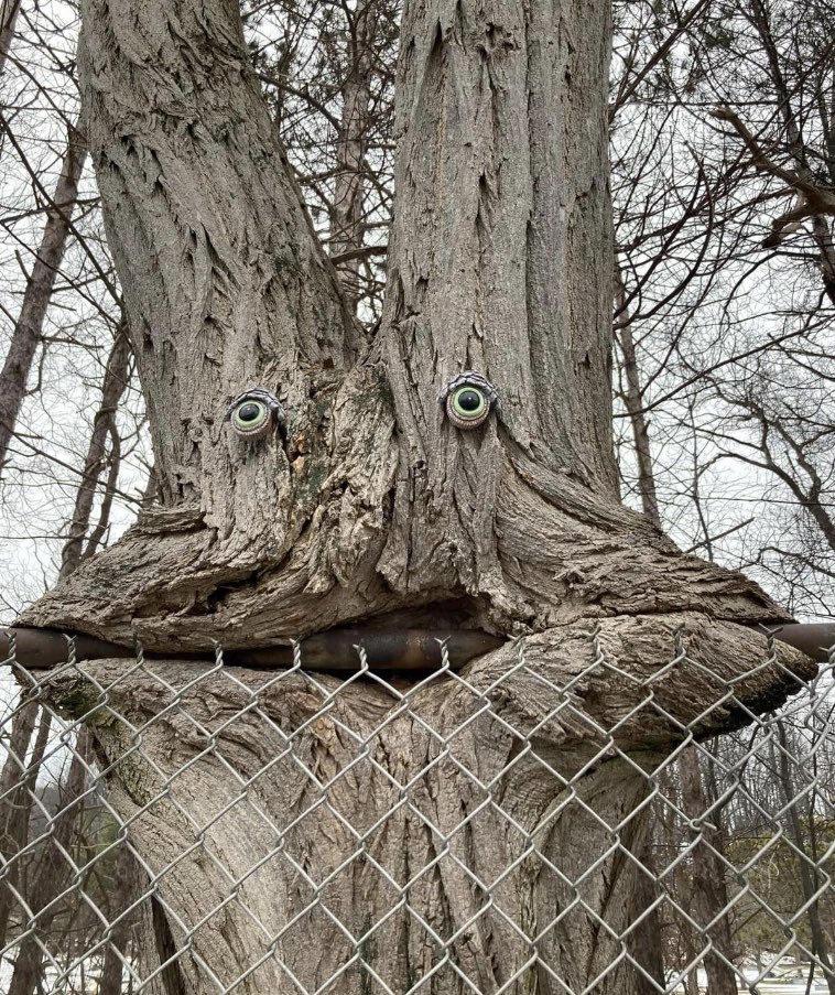 5. Дерево трапезничает забором в одном из голландских парков, а «глазки» ему приделали какие-то шутники