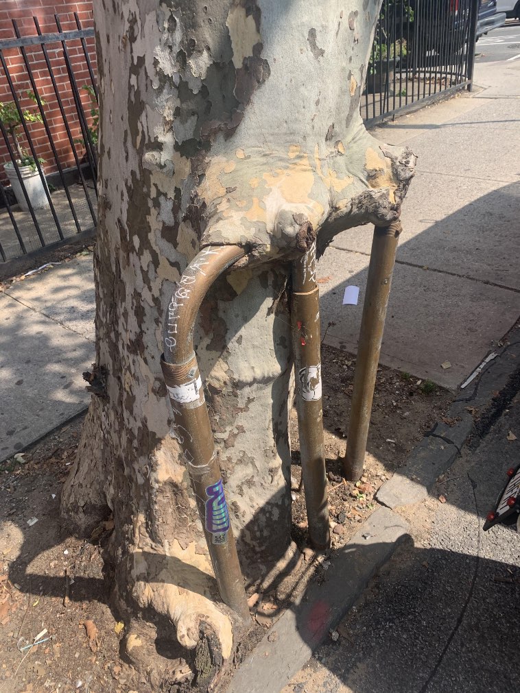 Существуют особо прожорливые деревья, которым не достаточно солнечного света и того, что они получают из почвы. Они то и дело осматриваются по сторонам в поисках чего-нибудь более аппетитного и сытного. И надо сказать, особой разборчивостью эти любители покушать не отличаются, ведь им по вкусу и ограждения, и дорожные знаки, и всевозможные таблички.