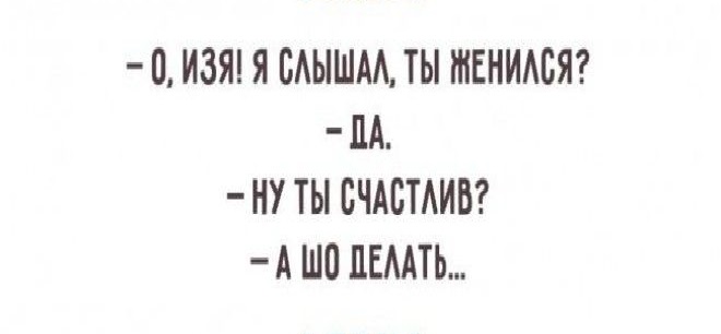 — Молодой человек! Вы меня спросили, и я Вам таки скажу. Вы женаты?