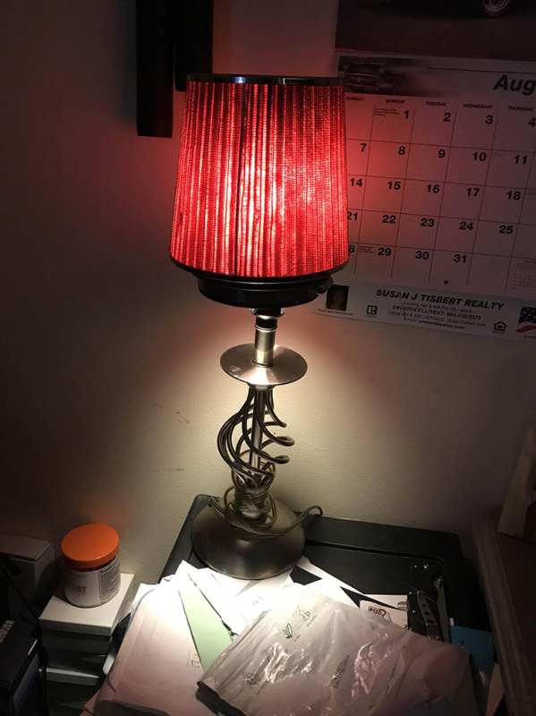 Лампа из автомобильных запчастей. Вот та красная штука сверху – это воздушный фильтр.