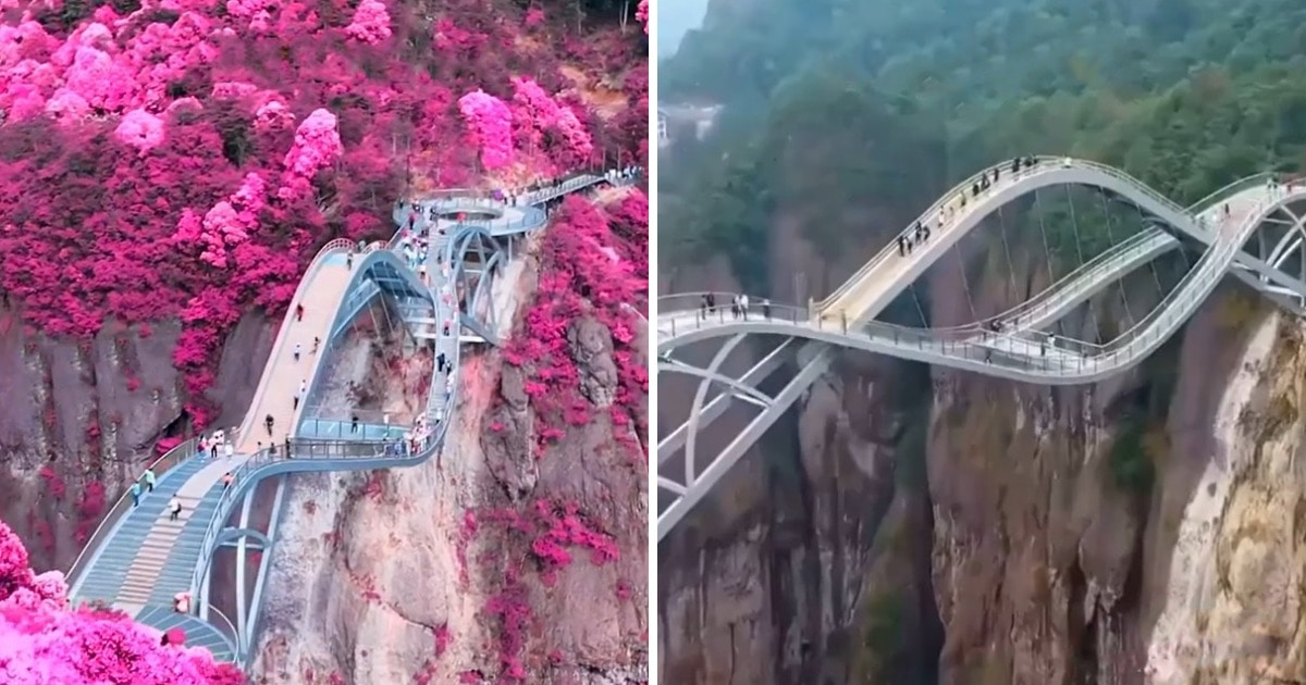 Двухъярусный мост возвели в КНР в 2017 году. Это удивительное строение привлекает туристов со всего мира. Главная его особенность — стеклянный и абсолютно прозрачный настил. У посетителей при его посещении есть реальная возможность заглянуть в бездну и испытать свои нервишки на прочность.