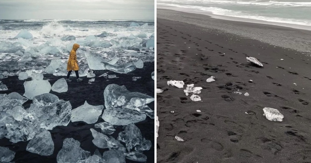 Пляж Даймонд, Исландия. Где лёд?