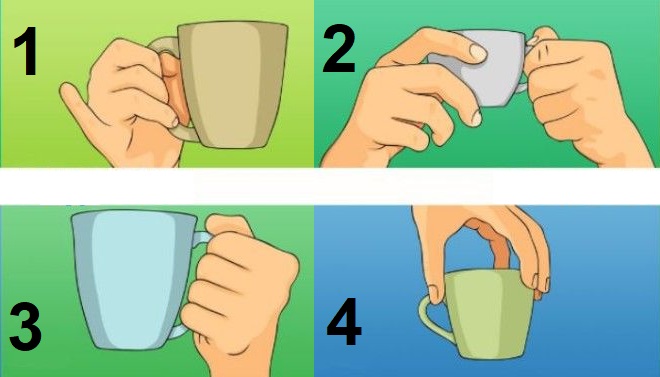 Когда дужка чашки крепко охвачена всеми пальцами одной руки.