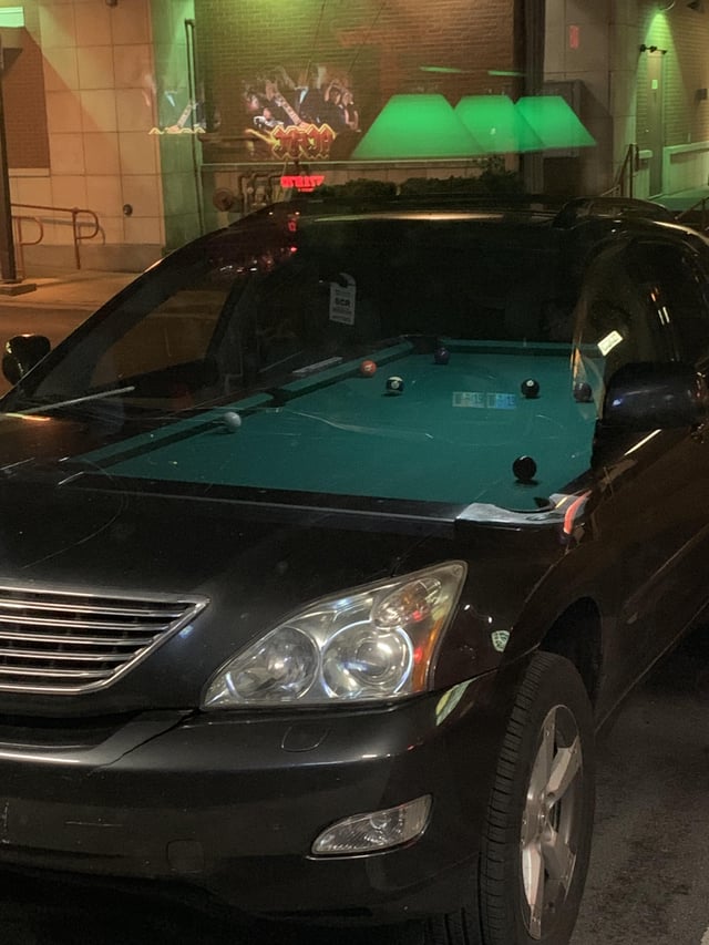 Отражение бильярдного стола в этом баре идеально сочетается с интерьером автомобиля снаружи
