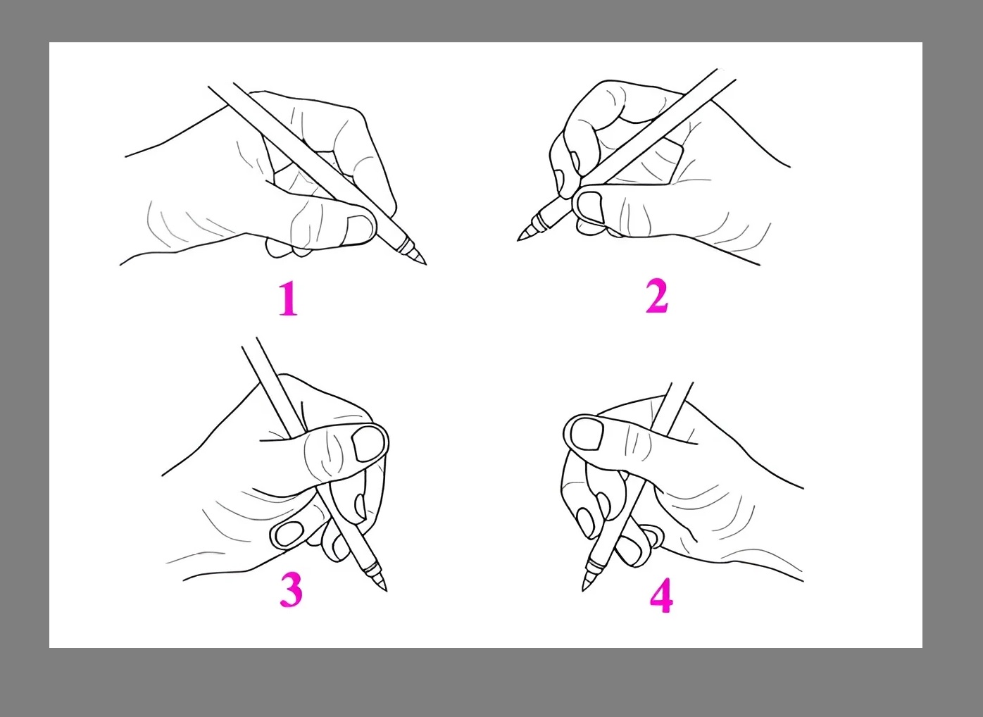 Внимательно присмотритесь к рисунку ниже, и выберите свой способ держать ручку во время письма.
