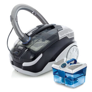 Для ликвидации мусора, пыли, шерсти животных, пыльцы и клещей хватит одного литра обычной воды. Именно столько нужно залить в запатентованный фильтр AQUA-BOX, чтобы надежно связать мельчайшие аллергены, запереть их внутри контейнера, а затем просто вылить вместе с грязной жидкостью без контакта с вредной сухой пылью. Входящий воздух промывается мощными струями воды при помощи уникальной технологии WET-JET. Благодаря системе подавления пыли WET-JET в пылесосе создается «эффект дождя» и пылевоздушный поток промывается водой. Именно благодаря этому, пыль и аллергены оседают на дне AQUA-BOX и не попадают обратно в воздух.