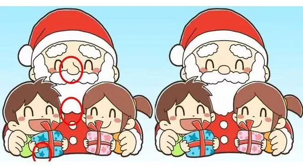 На изображении вам представлены сцены, как Дед Мороз доставляет детям подарки. На первый взгляд эти две иллюстрации кажутся почти близнецами. Однако они не идентичны, и ваша задача — найти три различия всего за 14 секунд. Ты готов к вызову? Ваше время начинается сейчас!