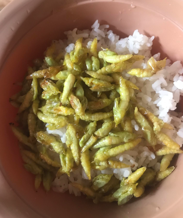 Каждый год в марте и апреле деревья кассии в центральном нагорье Вьетнама подвергаются нашествию армии желтоватых гусениц, которые больше всего на свете любят питаться их листьями. После полного развития личинки покидают верхушки деревьев и сползают по листьям, образуя коконы, прежде чем превратиться в бабочек и улететь. Но прежде чем произойдет эта окончательная трансформация, сборщики гусениц кассии собирают гусениц и куколок по одной, чтобы использовать их в простом жареном блюде, которое может быть немного тяжелым для желудка.