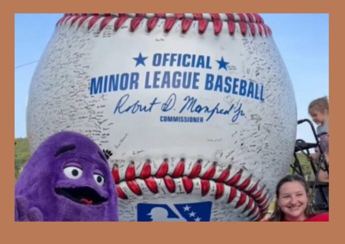 Гигантский бейсбольный мяч, доставленный на экскурсию по стадионам низшей лиги бейсбола, побил мировой рекорд Гиннесса, собрав 6750 подписей.