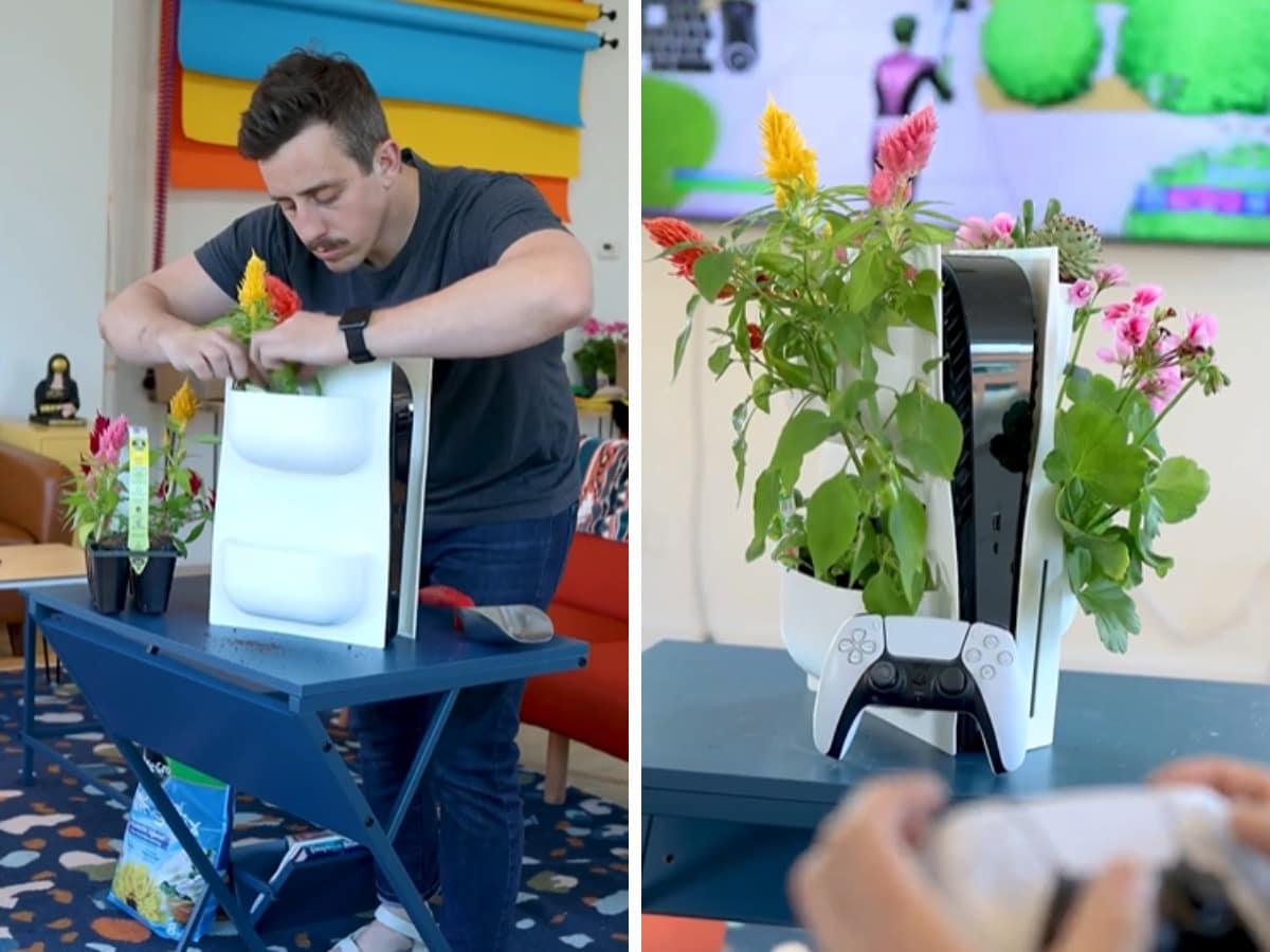 Специальные кармашки для PlayStation, которые превращают игровую приставку в подставку для цветов