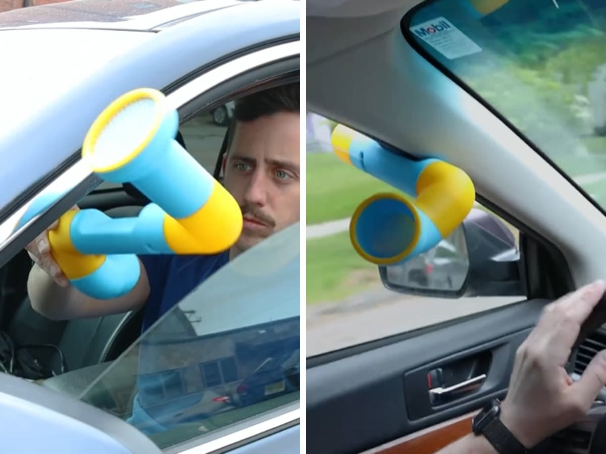 Закрепляете такую трубку в окне автомобиля, и ветерок всегда будет дуть прямо на вас