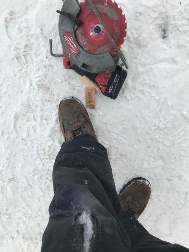 Спусковой крючок и предохранитель замёрзли и не срабатывали. Остановил пилу в последний момент!