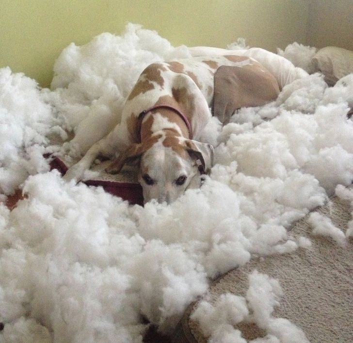 Рано или поздно домашние питомцы всё равно совершат какое-нибудь преступление домашнего масштаба, а разбираться с последствиями придётся именно хозяину. И иногда пушистые хулиганы настолько отвязны, что даже и не пытаются скрыться с места преступления, и их тут же ловят с поличным: у разорванной подушки, с куском украденного мяса, в цветочной кадке… И все эти моменты ещё и попадают на фото.