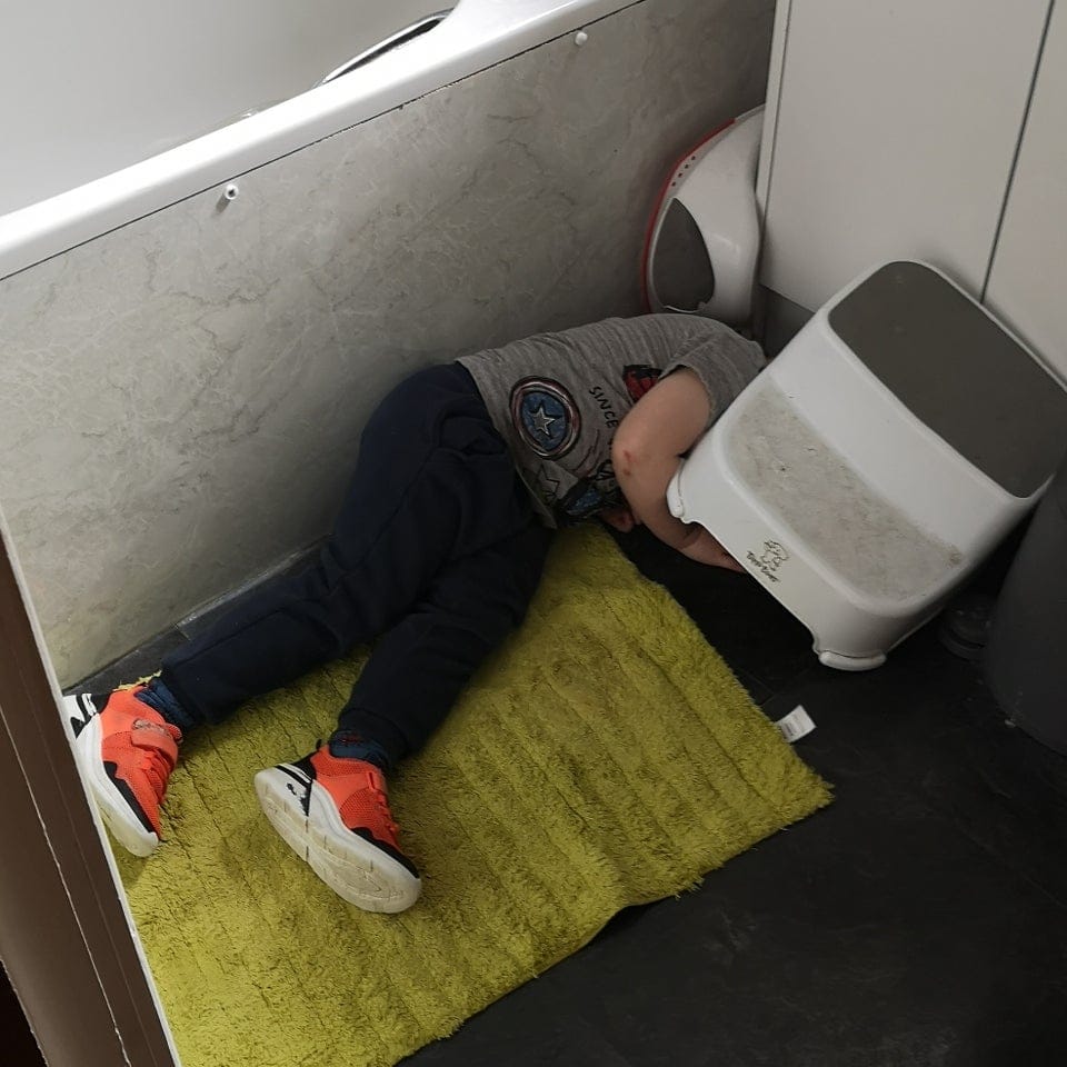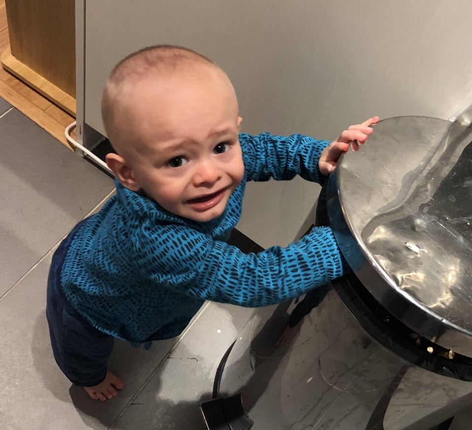 Мой сын уверен, что он выкинул собственную руку. Ему не достать её из мусорки, потому что другой рукой он закрывает крышку!