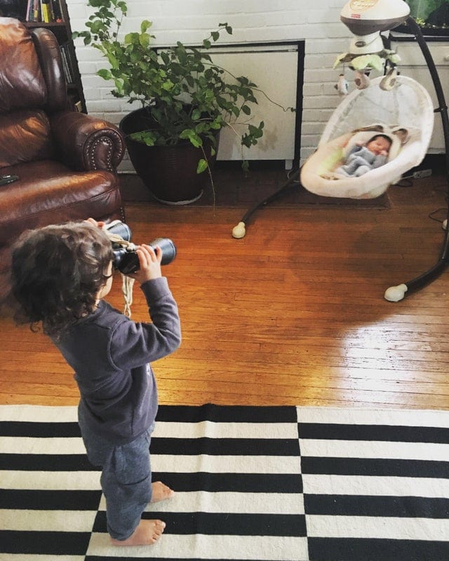 Попросили старшего сына не подходить пока слишком близко к младенцу. Он отнёсся к просьбе серьёзно