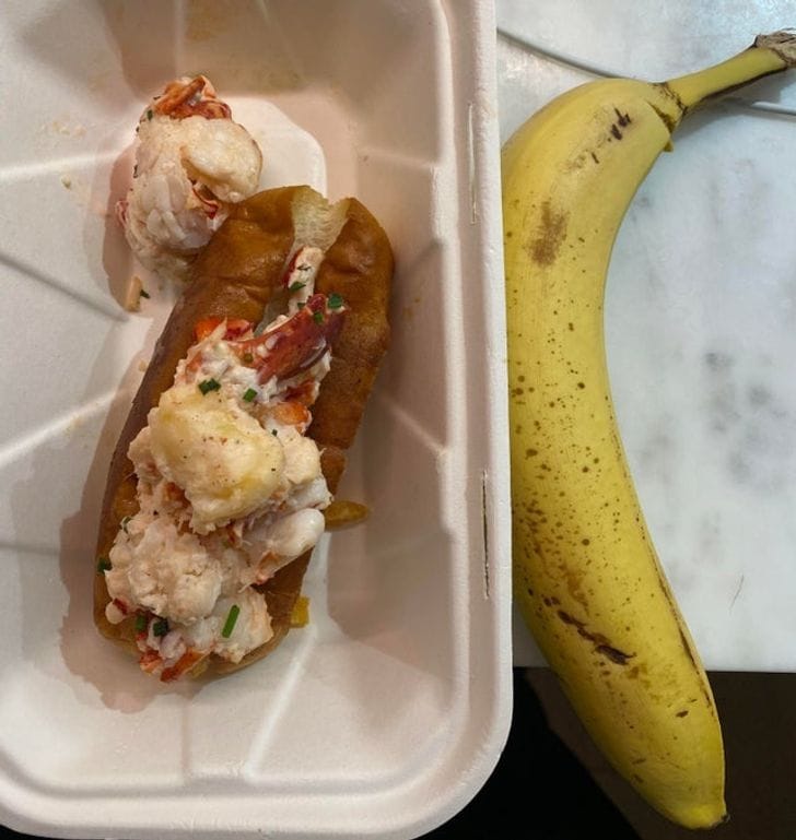 Ролл с лобстером за 34$. Банан, чтобы сравнить размер