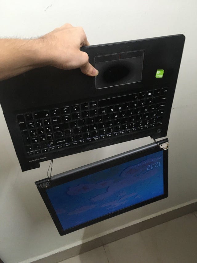 Думаю, что чехол от ноутбука не был пустой, когда попал в мусоропровод