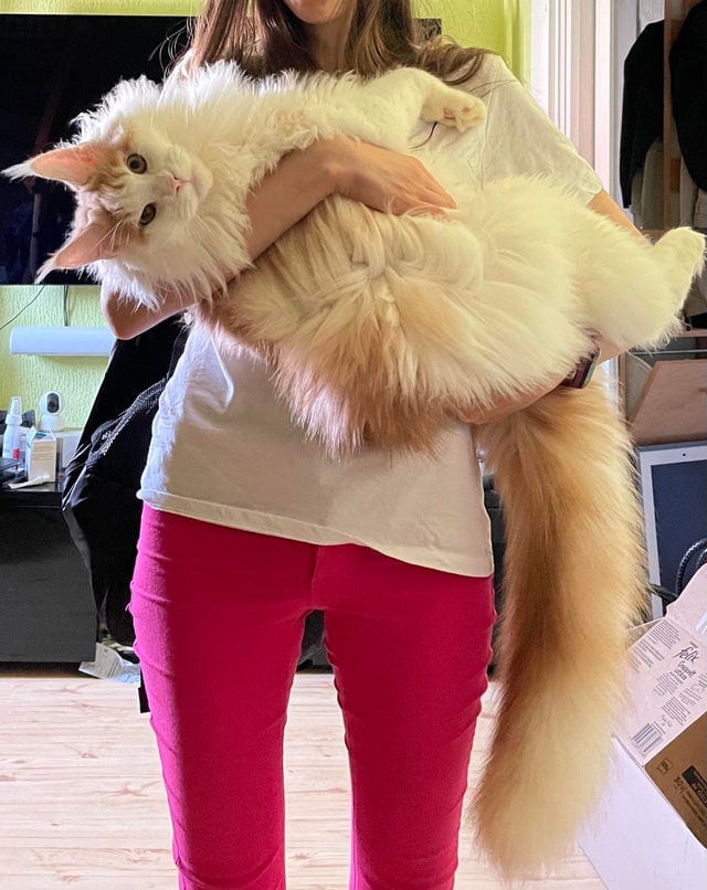 Бывают как компактные котики, так и настоящие великаны, которые своим весом способны придавить взрослого человека к дивану. Да, едят они куда больше корма, чем их обычные собратья, но при этом и мурлыкают громче, и площадь для поглаживания у них на порядок больше.