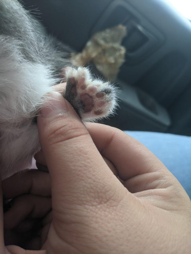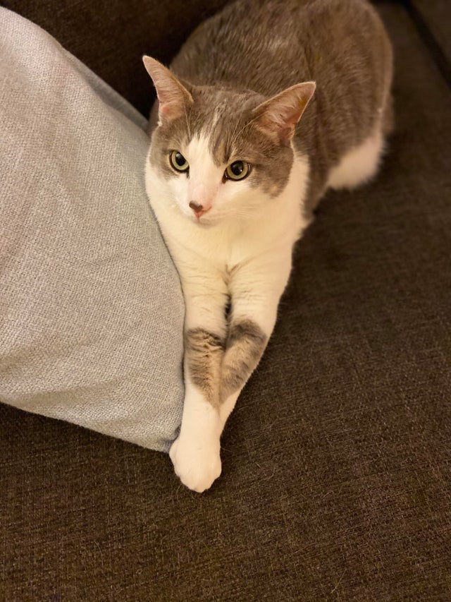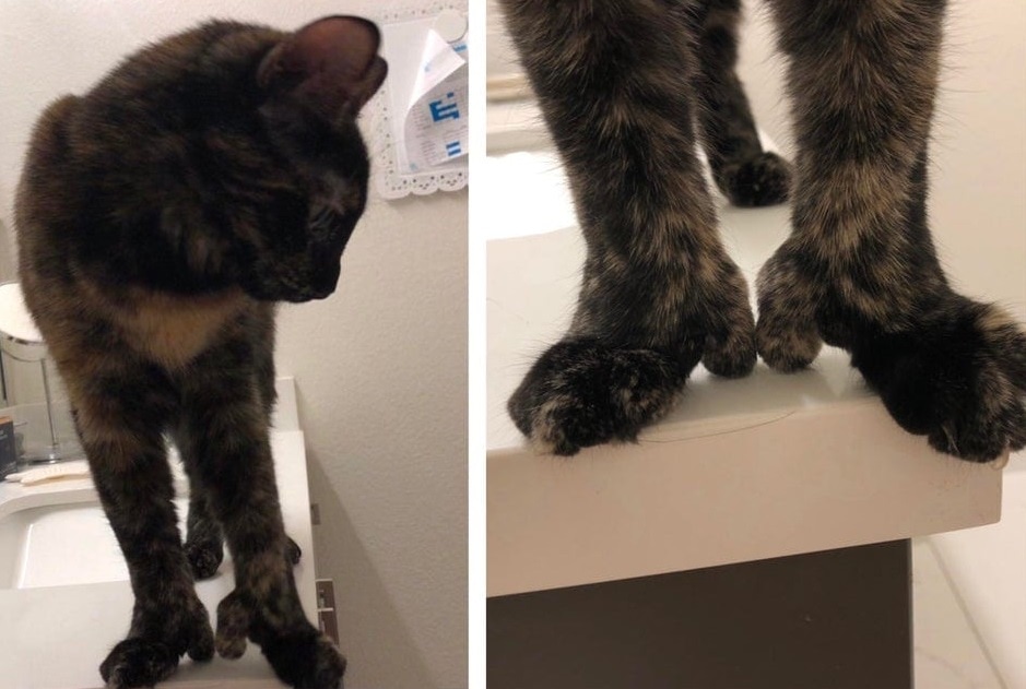 Лапки моего котика выглядят так, будто он стоит в туфельках на каблучке