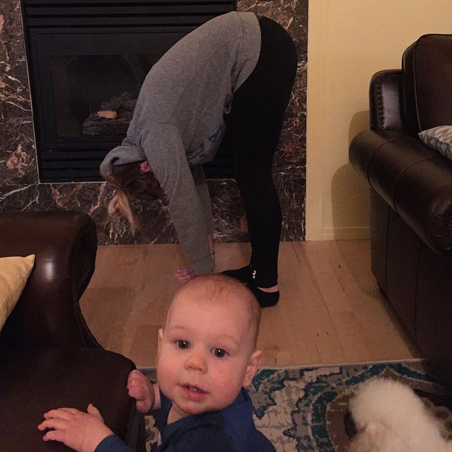 Любые фото домашней тренировки станут гораздо лучше с младенцем