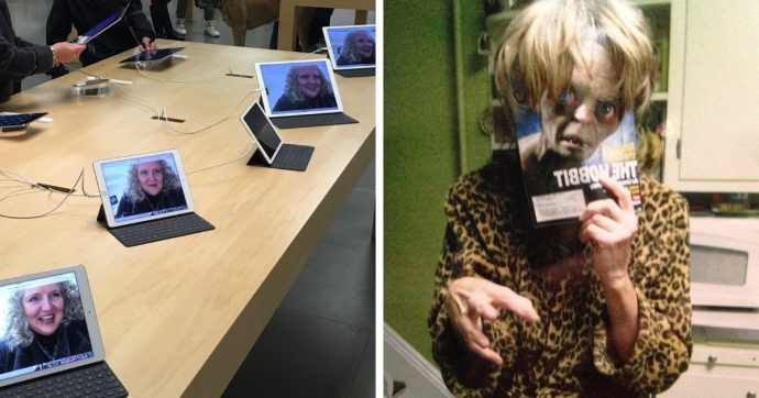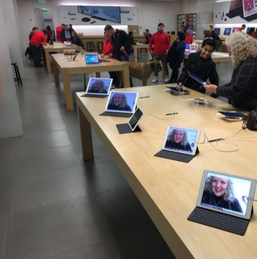Мы с папой сказали, что не выйдем из магазина Apple, пока мама не сфотографируется на все гаджеты в зале