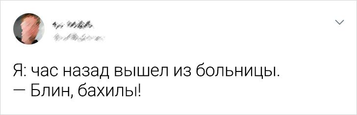 Иду как-то мимо поликлиники, а впереди меня шагает девушка в бахилах. Ну я отнеслась с пониманием — сама неоднократно так щеголяла по улицам. Подхожу к ней, трогаю за плечо и с улыбкой говорю: «Вы забыли снять бахилы». Она поворачивает ко мне перекошенное от злости лицо и шипит: «Как вы меня все задолбали! Да я специально натянула их, чтобы в новых сапогах по грязным лужам не идти!» © Палата № 6 / VK