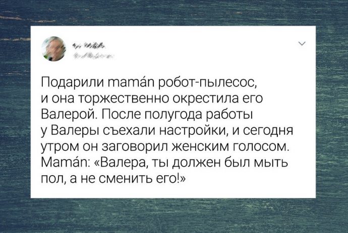 - Моя подруга — художница, зарабатывает этим на жизнь, в нашем небольшом городе ее много кто знает. И вот ее сын (он тоже увлекается рисованием) пошел в 1-й класс. Был там какой-то конкурс, и он сам нарисовал для него пейзаж. Принес в школу, а ему высказали, что он должен был нарисовать без помощи матери. Вызвали подругу в школу. А она молча посмотрела на этот пейзаж и выдала: «То есть, по-вашему, так рисует художник со стажем 20 лет?» © Подслушано / Ideer