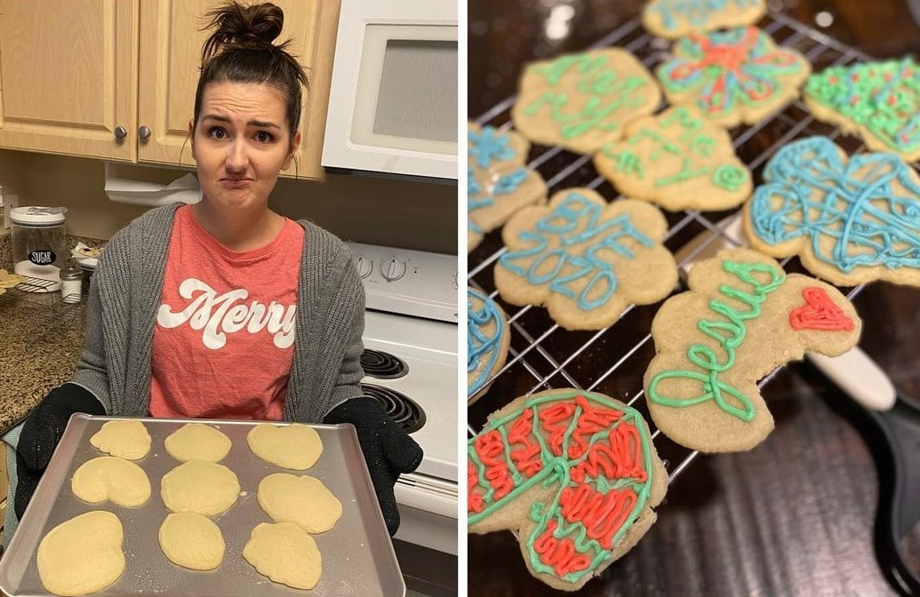 К тому времени, как мы перестали смеяться над бесформенными каплями, которые мы доставали из духовки, украшать их уже не хотелось (к тому же, они были так себе на вкус). Поэтому мы просто порисовали на них глазурью.