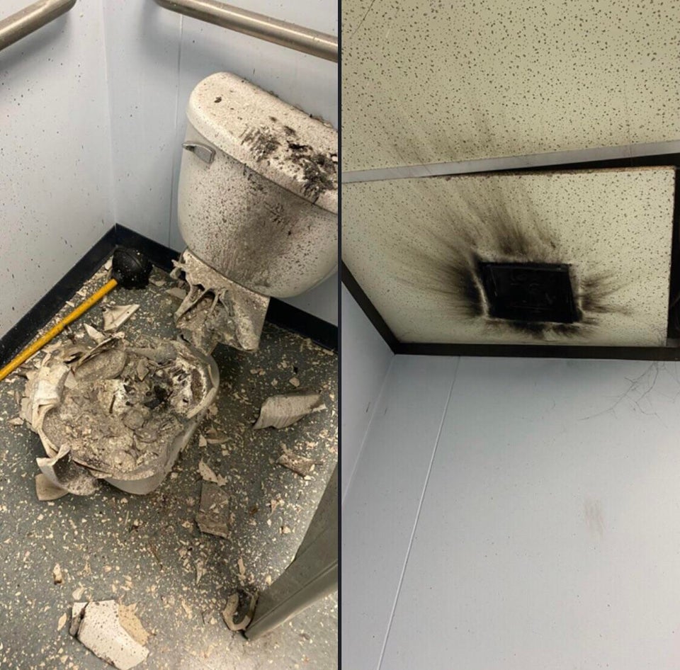 Он расплавился и бросился в унитаз, расколов его на куски.