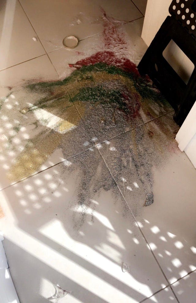 Нет лучшего начала утра, чем уронить полную банку блёсток