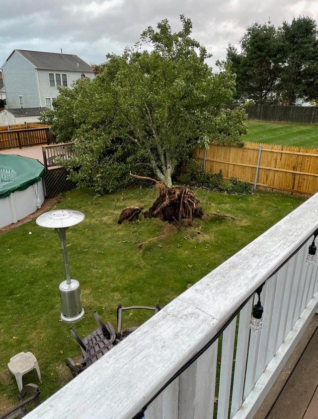 Моё 20-летнее дерево, посаженное, когда я родился, прошлой ночью выкорчевало ураганом