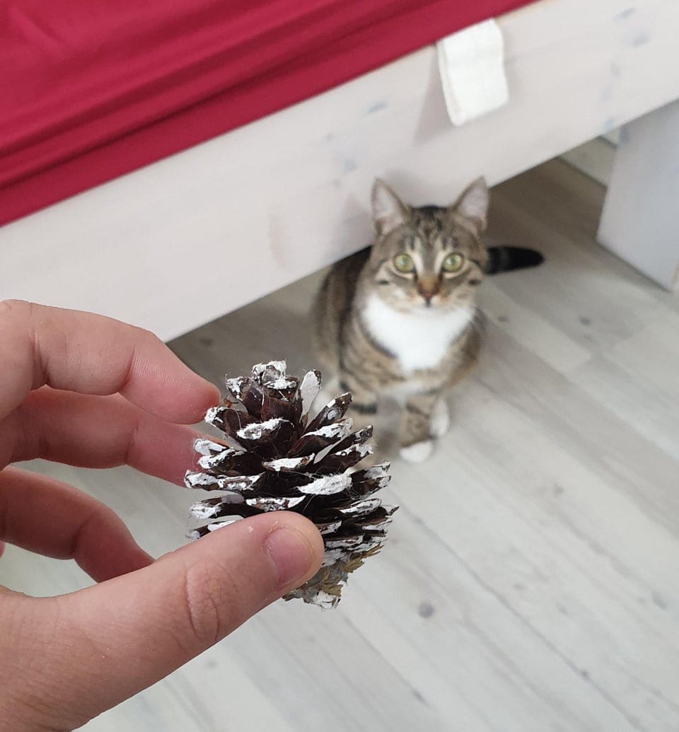 Моя кошка принесла мне декоративную сосновую шишку. Но у меня дома никогда не было декоративной сосновой шишки!