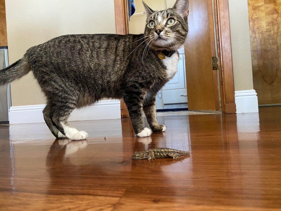 Мой кот украл ланч моего соседа и принёс его мне. Настоящий добытчик!