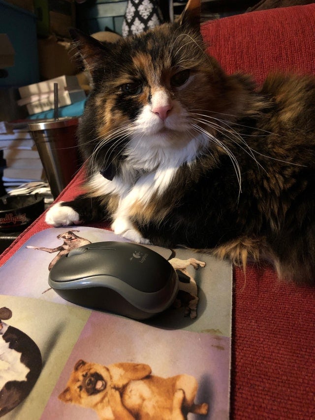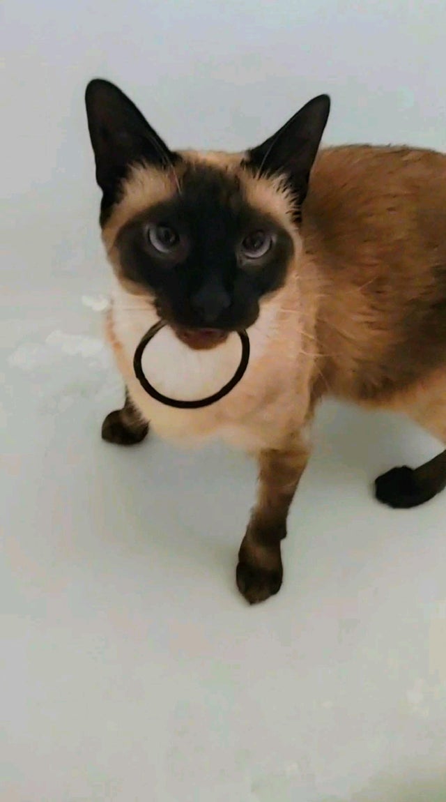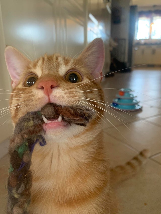 Муж прислал снимок нашей кошки Зены, которая принесла ему мою резинку для волос