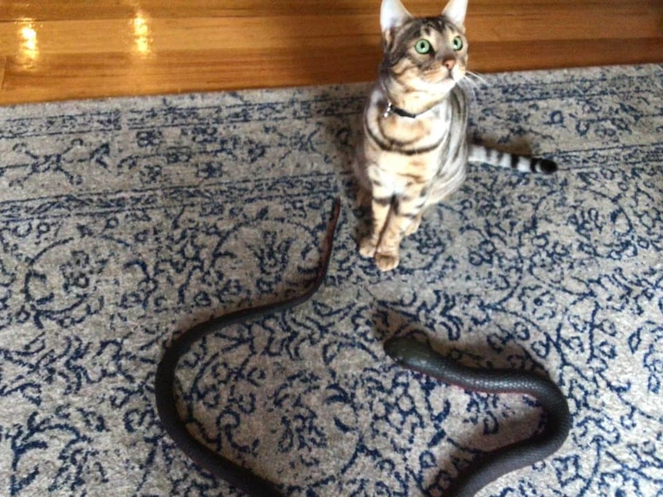 Мой кот несколько месяцев не выходил из дома, а сегодня принёс мне откуда-то игрушечную змею