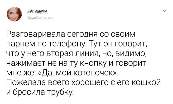 - Как-то мой парень поехал в другой город навестить родных и друзей, которых сто лет не видел. Приехал, начал показывать фотки с друзьями и подругами детства: «Это Лелька, бывшая одноклассница, это Сашка, это Катя» и так далее. И интонация так немного изменилась на этой Кате, осторожно как-то так про нее сказал. Совсем почти незаметно, но я-то его хорошо знала. У меня прям холодок по спине. Подозрения закрались, но уверенности не было. Потом нашла их переписку, и все, разошлись. Можно сказать, вычислила по интонации голоса. © Julietta / AdMe