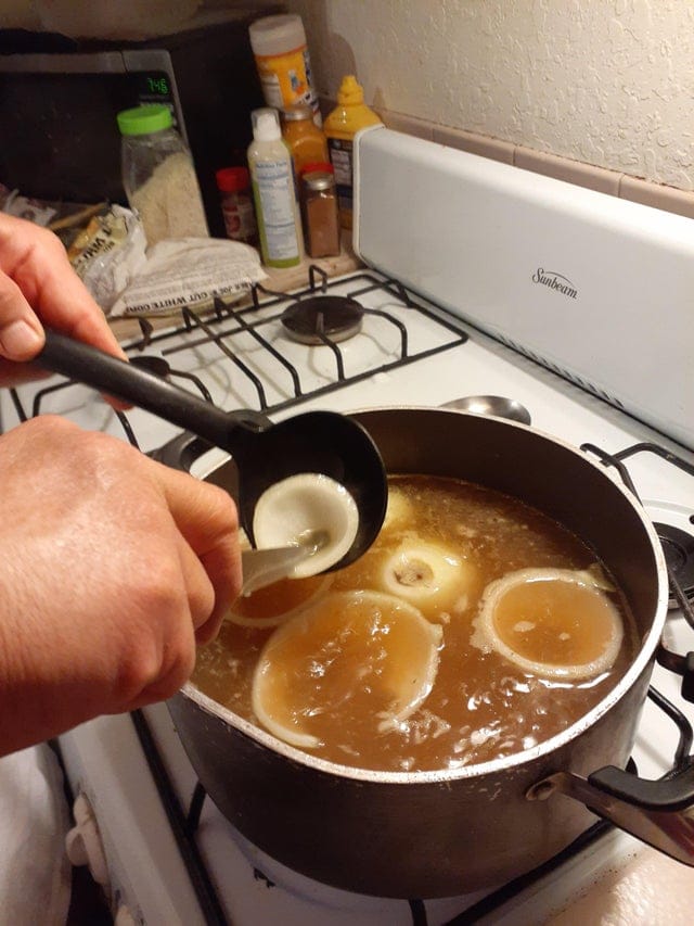 Папа решил приготовить суп по маминому рецепту, но не совсем понял фразу «нарезать лук колечками»