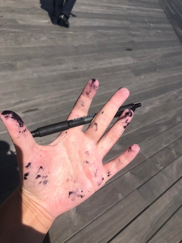 Летом я работаю в полиции и целыми днями нахожусь на улице. Такая жара, что как только я положил ручку в карман, она взорвалась