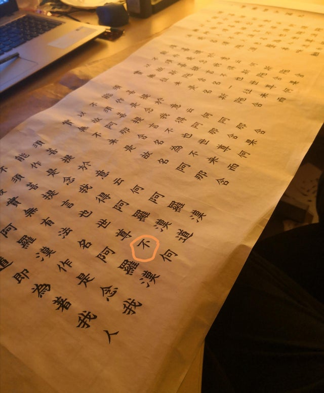 Я занимаюсь каллиграфией. Я ошибся в обведённом символе, который является частью свитка из 300 слов